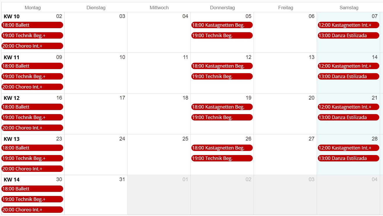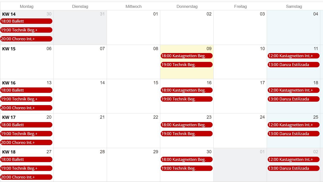 - 13:00 – 14:00 Uhr: Spanischer Tanz "Danza Estilizada" mit Kastagnetten (Beginner)